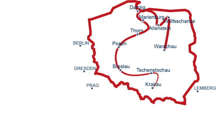 - 6 x 3-Gang-Abendessen in den Hotels (1x Krakau, 1x Breslau, 1x Thorn, 1x Danzig, 2x Masuren)